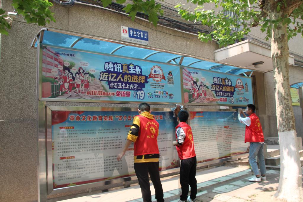 活动过程中,同学们根据老师的安排,不畏炎热,拿起抹布、端起水盆,对学校的报刊栏进行了认真地擦拭。整个活动中,老师和同学们团结协作,干得热火朝天。看到一个个焕然一新的报刊栏,同学们脸上露出了满意的微笑。