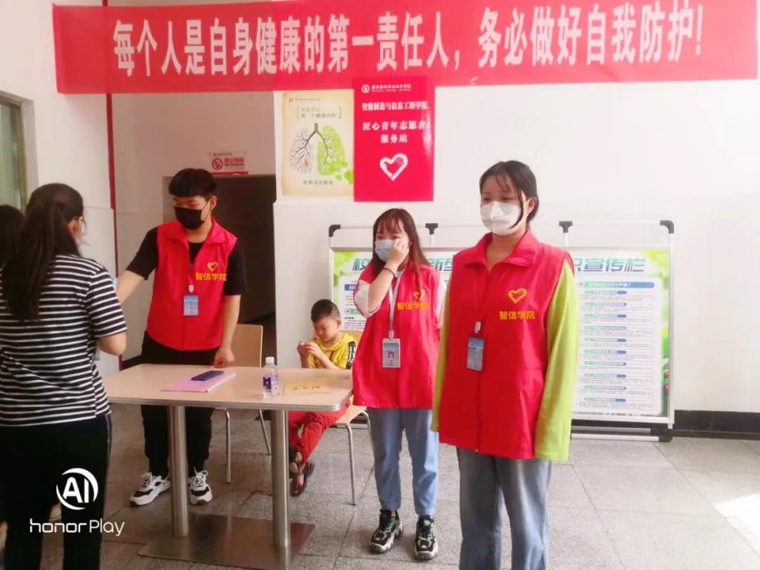 此次志愿者服务站,是智信学院匠心青年志愿者服务队在疫情期间在校设立的第一个志愿者服务站,智信学院匠心青年志愿者服务队成立五年,在校内外开展志愿者服务活动100余次,参与人数2000余人,此次疫情期间返校后,同学们积极报名主动提出参与校园抗疫志愿者活动。