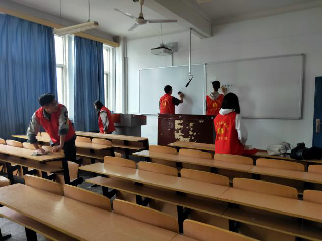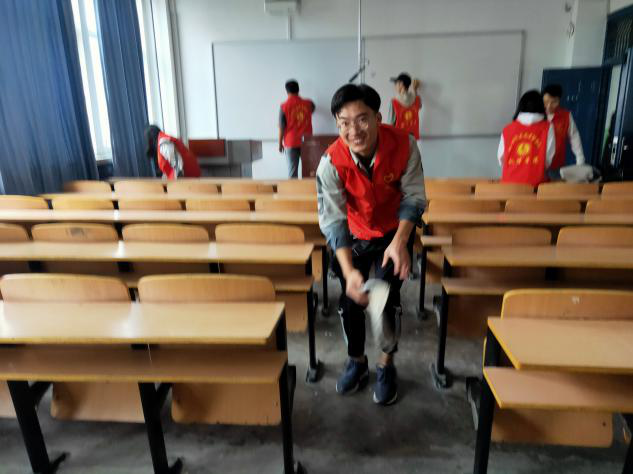 当天中午11点40分下课后,志愿者们手持清扫工具来到教学楼,开始对十几间教室进行打扫,志愿者们人人都行动起来,全身心投入到劳动中。小到纸屑、果皮,大到纸盒、食品袋,经过大家的努力,大家认真打扫教室的每一个角落,每个人的垃圾袋中都已经“战果累累”。历经一个多小时的努力,教室环境焕然一新,同学们脸上露出了欣慰的笑容。