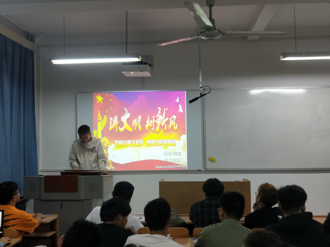 为进一步培育和践行社会主义核心价值观,规范管理学生日常行为,提升学生思想道德修养,形成“讲文明、树新风”的校园风尚,2020年9月23日晚自习,智信学院召开以“讲文明,树新风,争做文明大学生”为主题的班会。