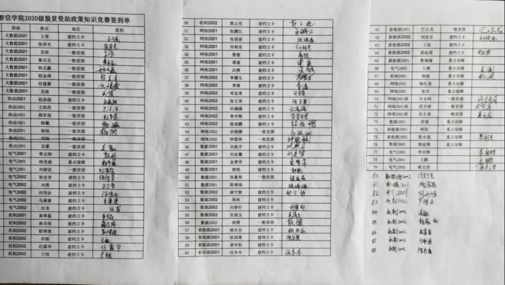 其次,针对2020级学生开展以“自立自强、诚实守信、知恩感恩、勇于担当”为主题的脱贫资助政策知识竞赛。此次知识竞赛主要通过线上知识竞赛的方式进行,以国家脱贫攻坚知识为主,包括国家奖助学金、助学贷款、勤工助学和十九届五中全会等学生资助政策体系知识。学生整体答题情况良好,最终根据答题成绩和所用时间评选出网络2001许文柯获一等奖,网络2002李耀生和热动王浩浩获二等奖,电气2002任龙、热动2001剡军保和网络2002李宇辉获三等奖,电气2003王鹏、网络2001武宇涛、电气2002张佳奇和网络2001谭康获优秀奖。