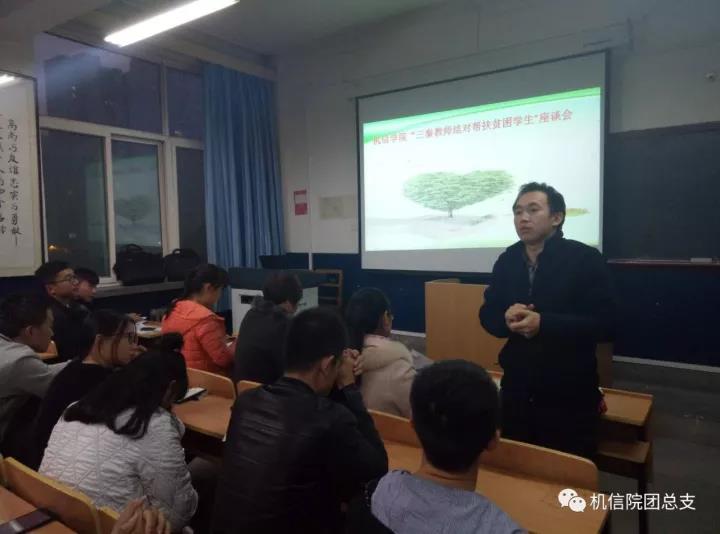 为贯彻落实习近平总书记“扶贫先扶志,扶贫先扶智”的指示精神,深入推进教育领域精准扶贫,深入扶贫的基本要求。10月10日机信学院在1号楼415教室举办了机信学院“三秦教师结对帮扶贫困学生”推进会,郭润霞、何利、尹艳玲、陈先章、景安琪老师和和50多名结对帮扶同学共同参与了此次推进会。
