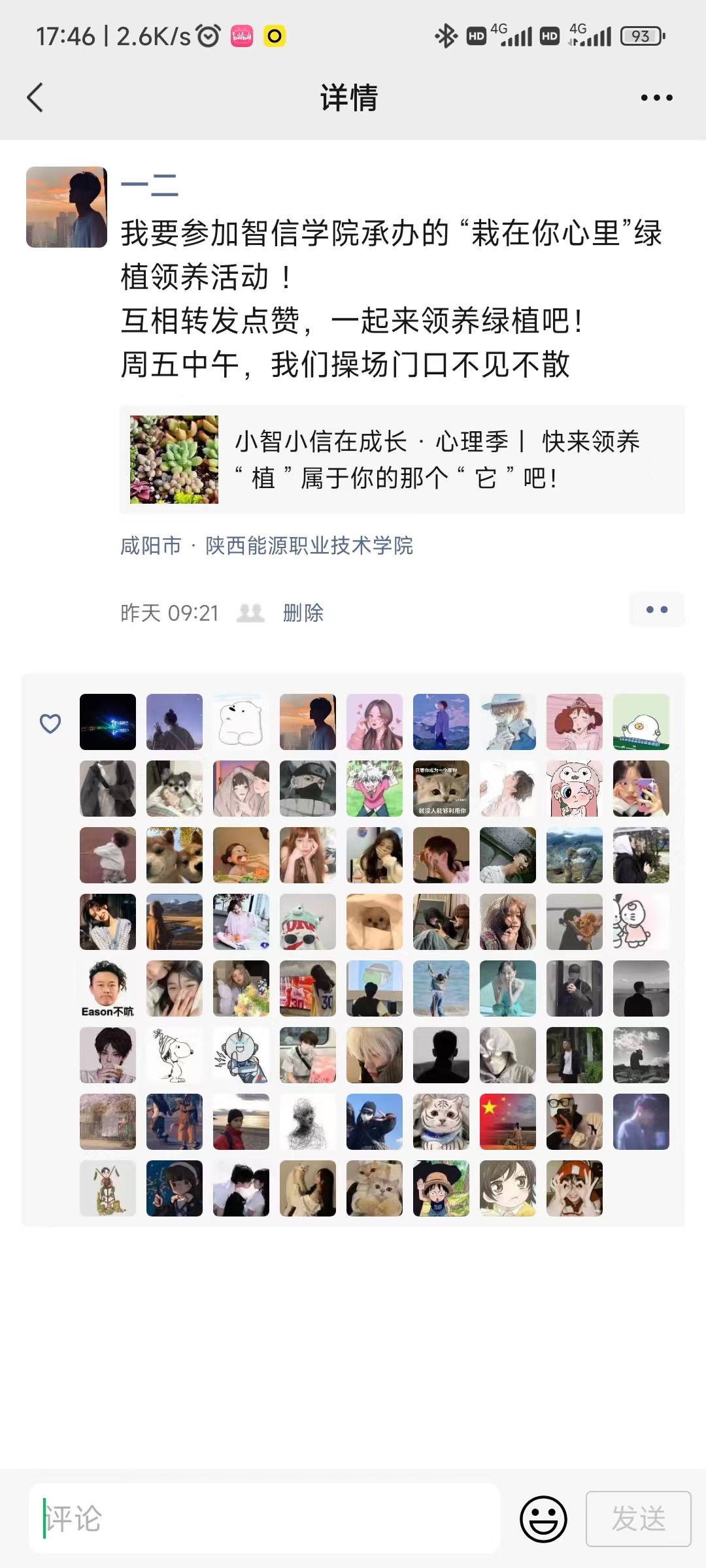 活动前,智信学院在官微平台青春智信推送活动文案进行宣传,同学们在微信朋友圈积极转发集赞。活动现场,大家热情高涨,早早地排起了长队,在现场志愿者的引导下,选择自己喜欢的绿植、签订领养协议并进入QQ交流群。领养绿植后,同学们在宣传板上用便利贴许下自己的心愿,纷纷表示会悉心呵护,分享绿植养护过程,期待自己的绿植成为生命最绽放的那棵。