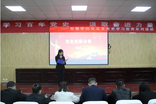 为庆祝中国共产党成立100周年,深入学习贯彻习近平新时代中国特色社会主义思想和党的十九大精神,引导全体党员学史明理、学史增信、学史崇德、学史力行,提高组织的凝聚力、战斗力、号召力和创造力,3月21日智信学院党总支在办公楼四楼文林大讲堂开展以”学习百年党史 汲取奋进力量“为主题的党史学习教育系列活动。