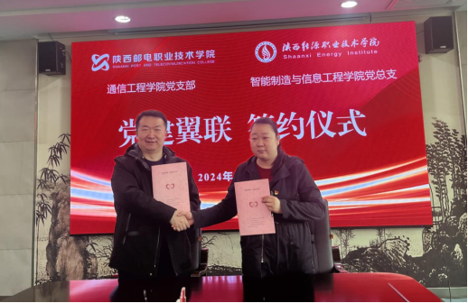为切实发挥党建引领作用,实现党组织资源共享、优势互补,2024年1月12日,我校智信学院党总支与陕西邮电职业技术学院通信工程学院党支部在办公楼第三会议室开展了“党建翼联”活动,并签署“党建翼联”合作书。陕西邮电职业技术学院通信工程学院党支部书记韩文理、副书记杨广驰、纪检委员雷蕾、青年委员杨芝,我校智信学院党总支书记冯帅、副书记贾永军、纪检委员黄俊梅、宣传委员王茜参加活动。