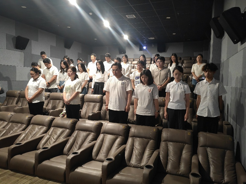 影片落幕,全场党员自发起立,向在历史苦难中逝去的同胞默哀一分钟,以此寄托深切哀思与崇高敬意。