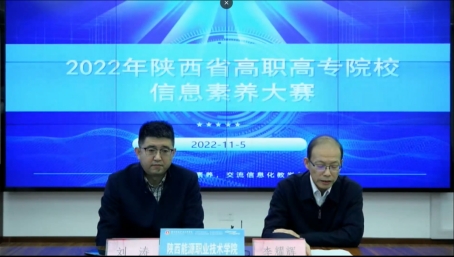 最后,陕西省职教高校图工委主任、陕西工业职业技术学院副校长梅创社做了热情洋溢的赛前动员讲话,宣布2022年陕西省高职高专院校信息素养大赛正式开赛。