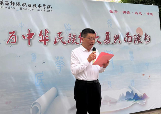 刘予东在活动中作致辞讲话,强调了阅读对个人、社会及国家发展的重要性,鼓励全校师生拿起书本,共同阅读,从书籍中汲取精神力量,培根铸魂、启智润心。要求广大师生时刻牢记使命,并为此孜孜不倦的学习工作,通过读书,营造学习型、书香型、爱国型校园文化。他与大家共同分享了关于读书的三点看法,一是读好书,读书的选择十分重要,应当选取具有价值和深度的好书来启发我们的思维,开阔我们的视野。二是善读书,在读书过程中不应仅停留在表面,还应该提出问题、思考问题,在深刻的思考中才能真正的从书中获取知识和启示。三是师导书,希望各位老师都能积极投入到阅读中,并将自己喜爱的好书推荐给学生,以共读共思带动共同成长。他希望“读书节”活动能够更加深入带动我校阅读服务体系的完善,建立健全能院学子阅读激励机制,提升“书香校园”建设水平,为养成终身阅读习惯打好根基。让技能充满书香,让书香浸润心灵,让心灵充盈家国。