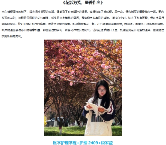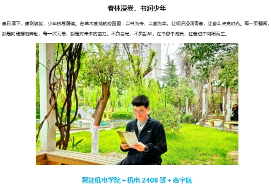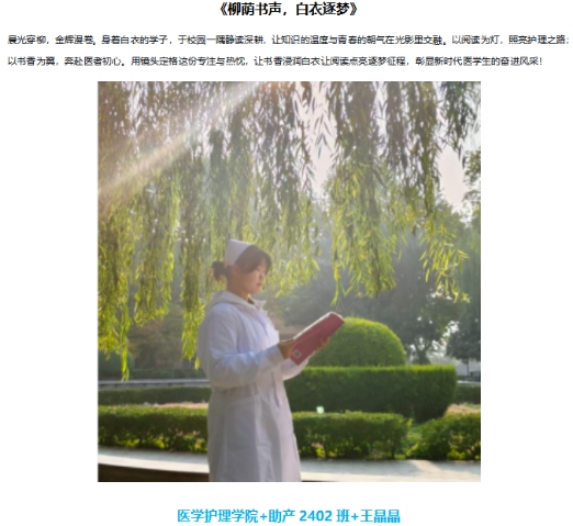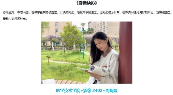 参赛作品题材丰富、情感真挚,既有图书馆内暖光之下,学子们伏案苦读、专注钻研的静谧画面,指尖翻过书页,满眼皆是对知识的渴求,尽显青春求学的专注;也有校园户外绿荫间、暖阳里,同学们静坐品读、悠然阅读的惬意时光,书香与草木气息相融,诉说着阅读带来的从容与欢喜。透过一幅幅作品,我们真切感受到阅读为同学们带来的快乐与成长,见证了书香与青春碰撞出的动人模样。