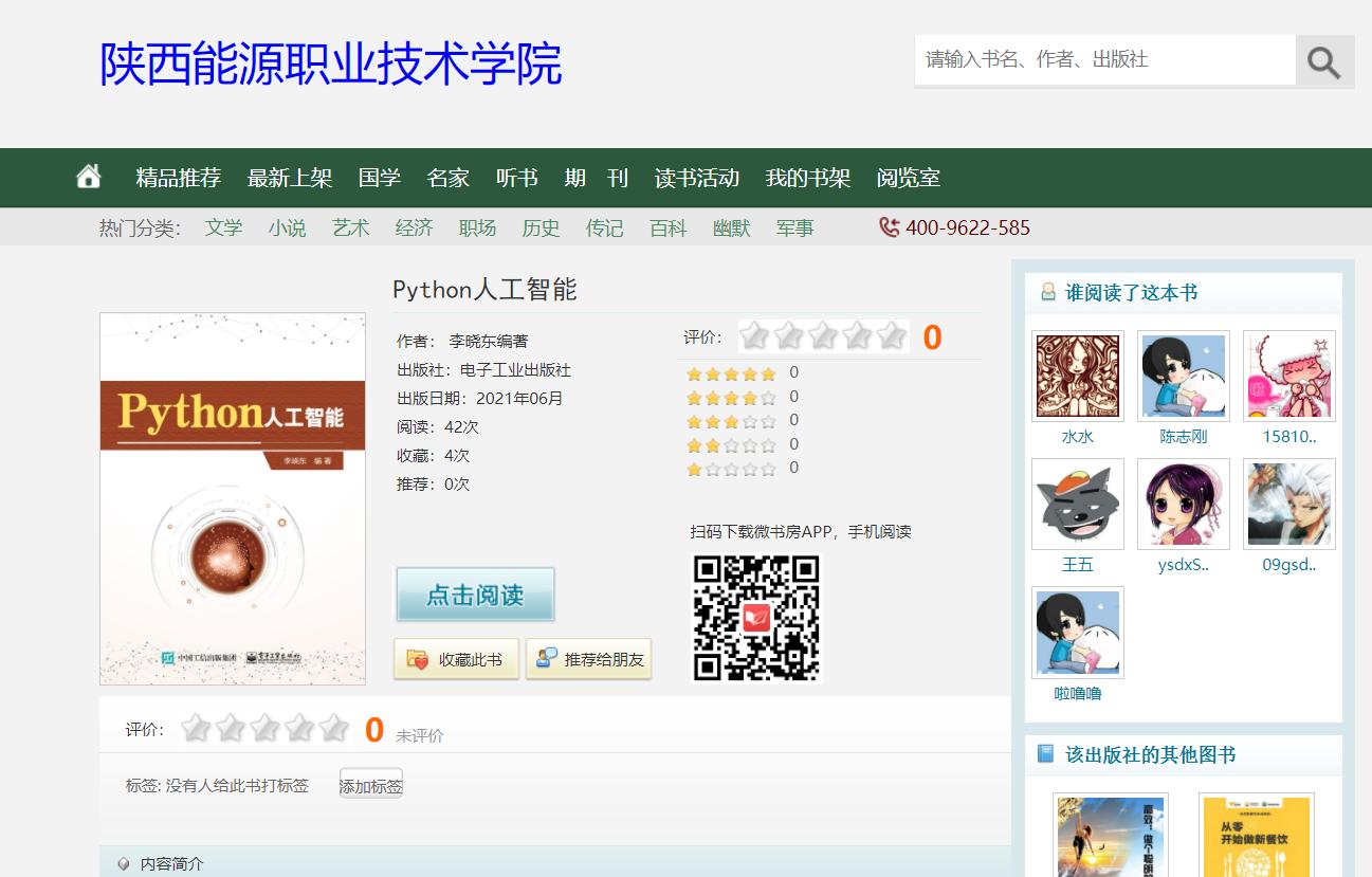 手机搜索关注公众号“陕能院图书馆”→搜索→书香陕西能源职业技术学院。即可随时手机阅读。