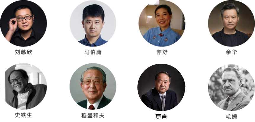 涵盖知名头部作家,确保作品的思想深度和创作高度,代表作家有莫言、余华、刘慈欣、史铁生、马伯庸等国内作家,赫尔曼·黑塞、威廉·萨默塞特·毛姆、阿尔贝·加缪等国外作家。