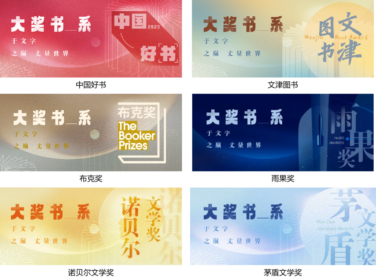 覆盖15个全球及国内各大权威图书奖项,包含中国出版界“三大奖”:“五个一工程”奖、中国出版政府奖、中华优秀出版物奖;被称为“文学界的奥斯卡”的诺贝尔文学奖;中国最高等级和最重要的文学奖项的茅盾文学奖、鲁迅文学奖;以及由国家图书馆主办并联合全国图书馆界共同参与的“文津图书”等。