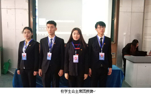 2017年12月1日,在临潼校区东一阶梯教室举行了校学生会、社团联合会换届大会暨团学干部授牌仪式。校团委书记于涛、团委老师、临潼校区校学生会和社团联合会全体团学干部300余人参加大会。