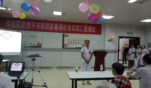 2017年7月19日下午,在铜川市职业病防治院营养餐厅由陕西能源职业技术学院携手铜川市职业病防治院开展了暑期社会实践汇报演出。到场的领导嘉宾有陕能院党委副书记郭开龙、团委负责人于涛、市职防院副院长申树春、副院长、副书记杨瑞辉、党政办主任卫明明及医院各科室的主任、大夫、护士,社会实践队员及瑞辉颐福园的老人们共同参加了此次活动。