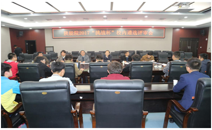 2017年4月11日上午8:30,学院组织开展了陕能院2017年“挑战杯”校内作品遴选评审会,会上对各系部报送的14件作品进行了评审和答辩,来自部分系部的14名同学对各自申报的竞赛作品逐一进行了汇报,汇报结束后,评审专家以及参赛学生来到实验室,现场对参赛作品进行了实地查看、现场演示。