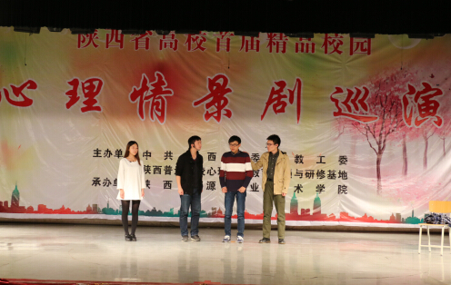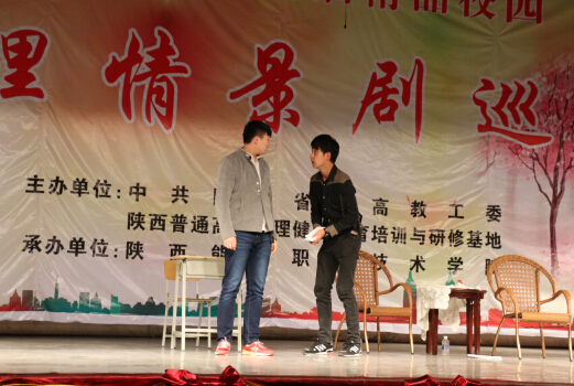 10月29日晚, 陕西高校首届校园精品心理情景剧巡演在我院咸阳校区菊园四楼大学生活动中心举行。系(部)党总支书记、团总支书记、辅导员、班主任及学生代表共1000余人观看了此次巡演。