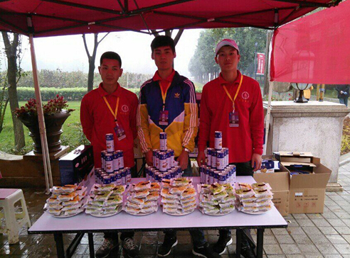 活动当天秋雨连绵,志愿者抵达活动场地后顾不上休息,迅速在活动现场搭建了40余顶帐篷为活动顺利开展提供了保障。