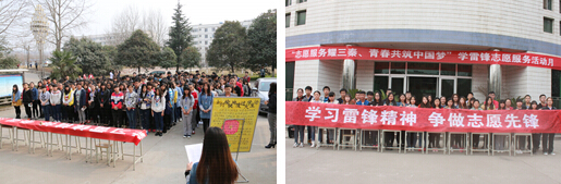 2015年3月16日下午4点,陕能职院临潼校区学雷锋志愿服务活动月启动仪式暨签名大会在临潼校区图书楼前举行。院团委、各系团总支书记、院学生会、院社团联合会、各系部团学干部代表等300余人参加活动。