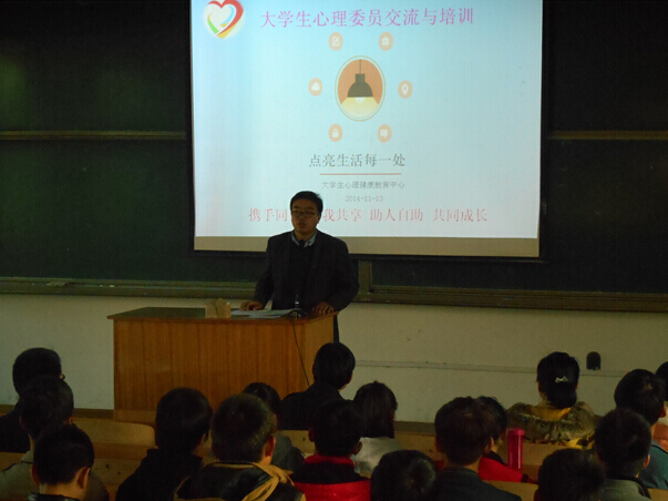大学生心理委员是传播心理健康知识的宣传员,是学校心理健康教育工作的一支重要力量,为了提高心理委员心理健康教育工作的思想意识和工作水平,发挥这一朋辈群体在大学生中的重要作用,大学生心理健康教育中心及心理协会在院领导的支持下,分别在11月6日及11月13日在综合楼502教室进行了主题为“点亮生活每一处”的心理委员培训会。