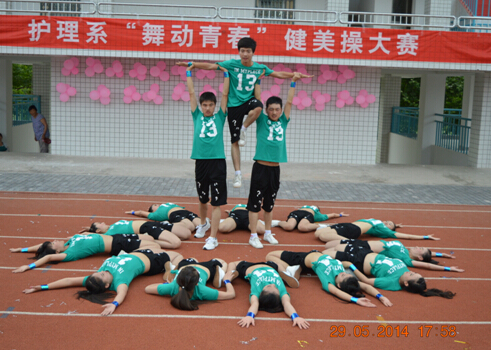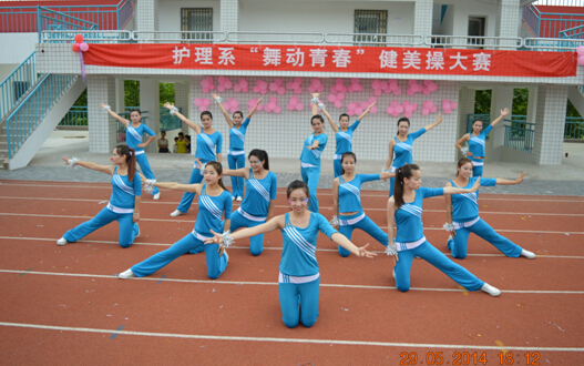 5月29日下午我院临潼校区护理系举办第四届“舞动青春”健美操大赛,共有15支队伍进入决赛,最终护理1301班获一等奖。