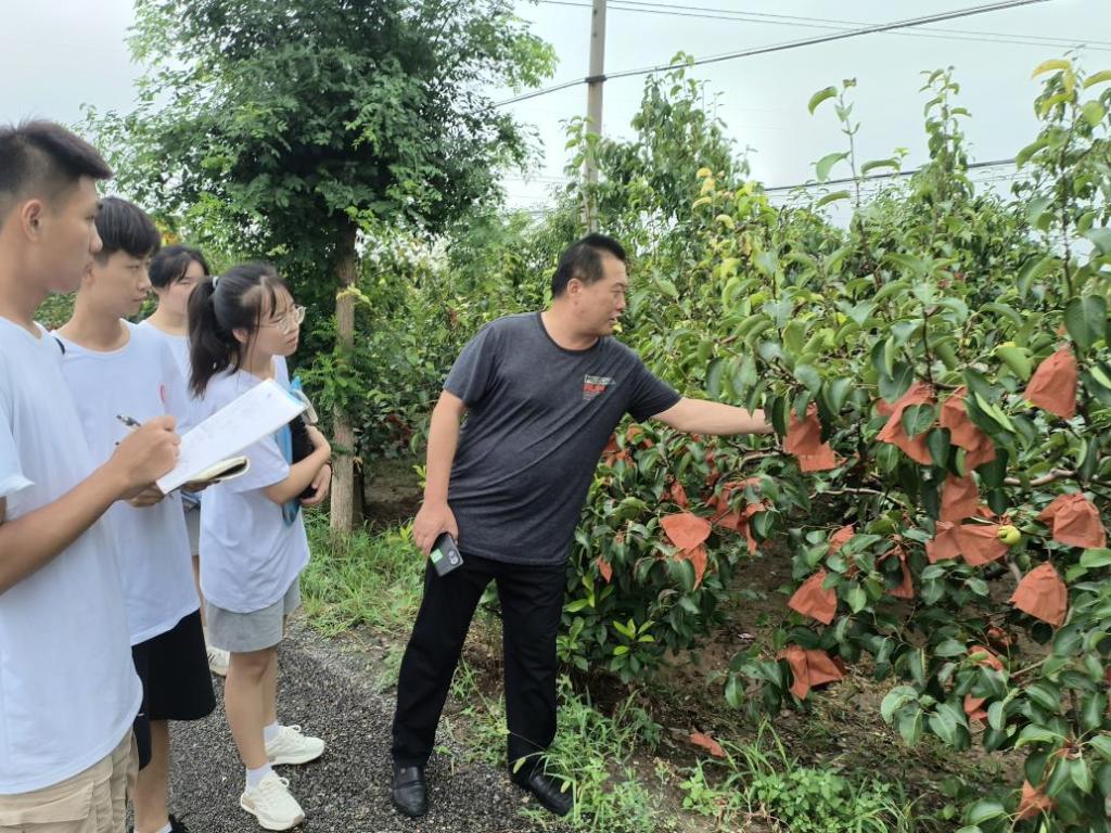 2022年7月14日,我校“镜头下的美丽乡村”暑期社会实践团一行9人前往党睦镇沙坡头村新品种梨产业示范园区进行走访参观,对产业园内产品进行宣传片拍摄,并与沙坡头村股份经济合作社共建暑期社会实践基地。