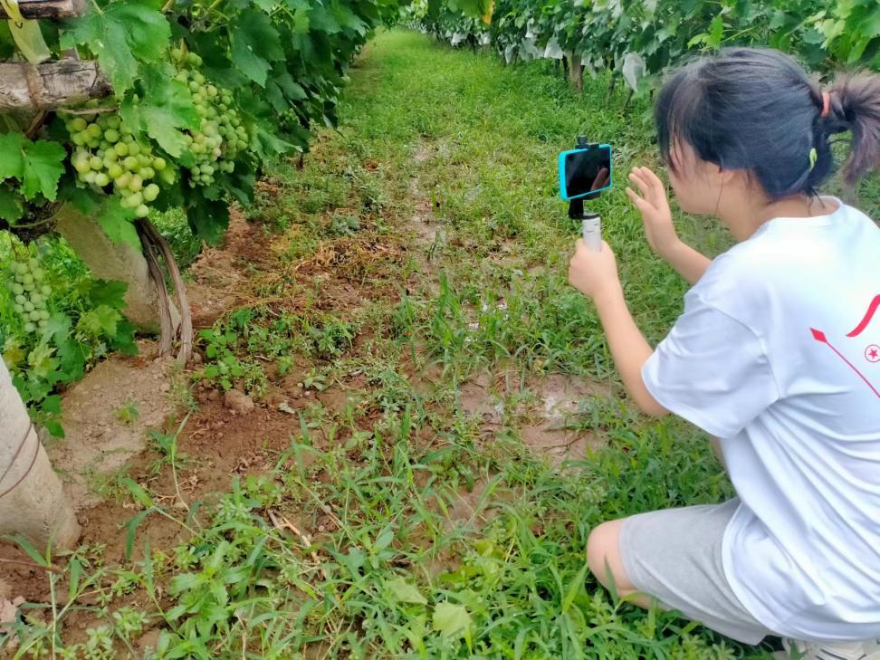 在村支书王仲华带领下,实践团成员走访参观了沙坡头村酥梨、葡萄园林两个产业园区,队员们对产业园内的产品概况、经营模式、销售渠道等方面进行了详细的了解,同时针对产品销售方式上进行调研,发现产业园内目前依靠线上平台推广方式较少,村民对于利用新媒体技术进行宣传的手段不太熟知。