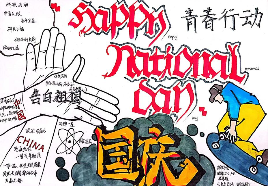 开展“行动青春,告白祖国”手工艺作品征集活动,同学们通过书籍阅读和上网查询,了解国庆相关知识,并配上画图,做成小报。每份手抄报主题鲜明、版面设计新颖、整体效果好,展现了同学们积极向上的精神风貌,在便利贴上写下简短而真挚的话语祝福祖国,体现师生们浓厚的爱国情怀,表达了对祖国的热爱。