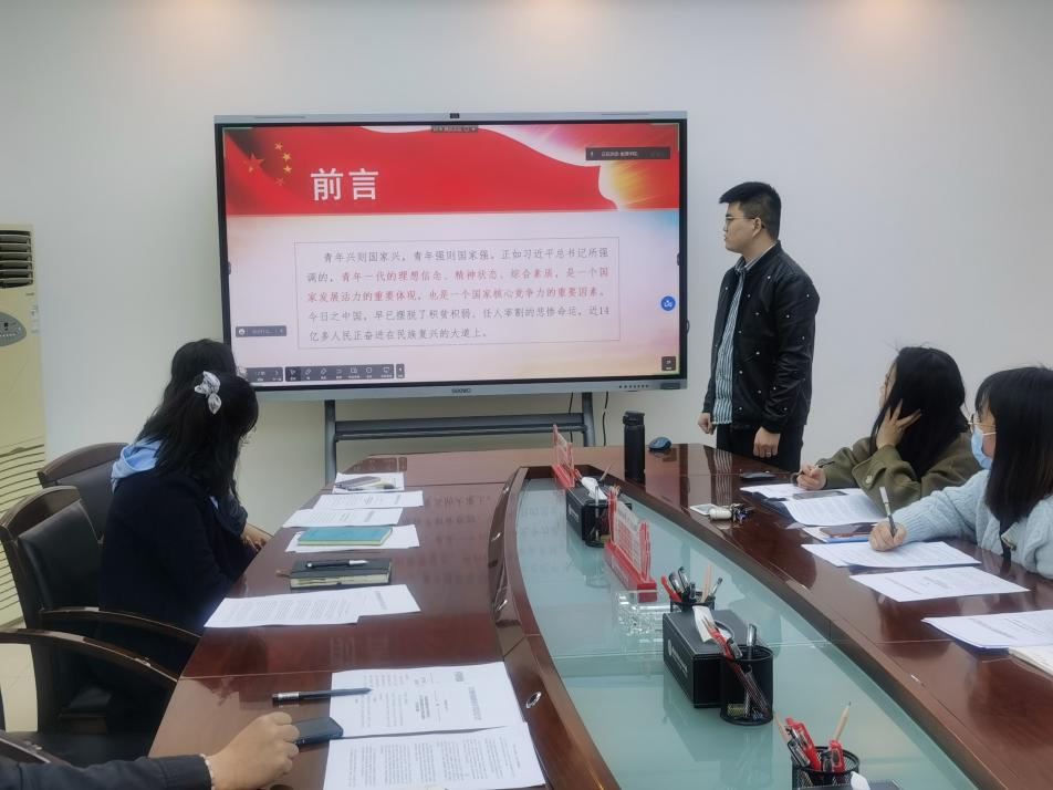 首先,经管学院团委书记任斌斌首先带领全体团干部学习了习近平在十四届全国人大一次会议上发表重要讲话。康养学院团委书记张志远为大家上了一堂生动团课,运用了PPT、视频等形式,生动鲜活地讲授了中国的发展史,提高团干部思想理论水平和政治素质。