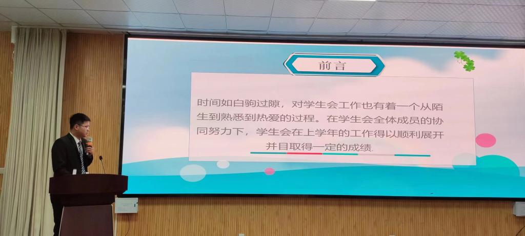 会议首先由校学生会、8个学院学生主席依次进行汇报。大家围绕部门简介、工作职责、校园文化、志愿服务等工作的开展情况,认真回顾本组织2022年度的工作、总结和反思不足,并提出2023年重点工作。