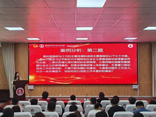 本次比赛分为专职团干部组和学生团干部组,比赛参照省级比赛模式项目分为团务基础知识测试、微团课视频展示、微团课讲授和案例分析四个环节,经过前期各二级学院的笔试选拔,校团委组织进行微团课视频展示评审,最终选拔出6名专职团干部和19名学生团干部进入校级决赛,进行微团课讲授、案例分析比拼,考察参赛选手相关理论知识以及分析问题、思考问题、研判问题的应用能力,同时对团干部现场应变能力和口头表述能力进行考察。各二级学院团委书记、副书记、学生团干部共29名选手参加比赛,5月12日,比赛各个环节全部完成,圆满落幕。