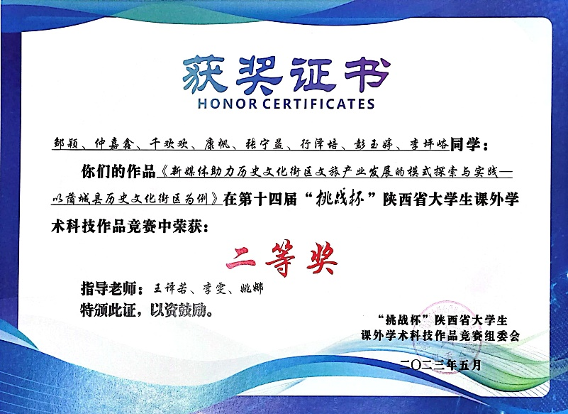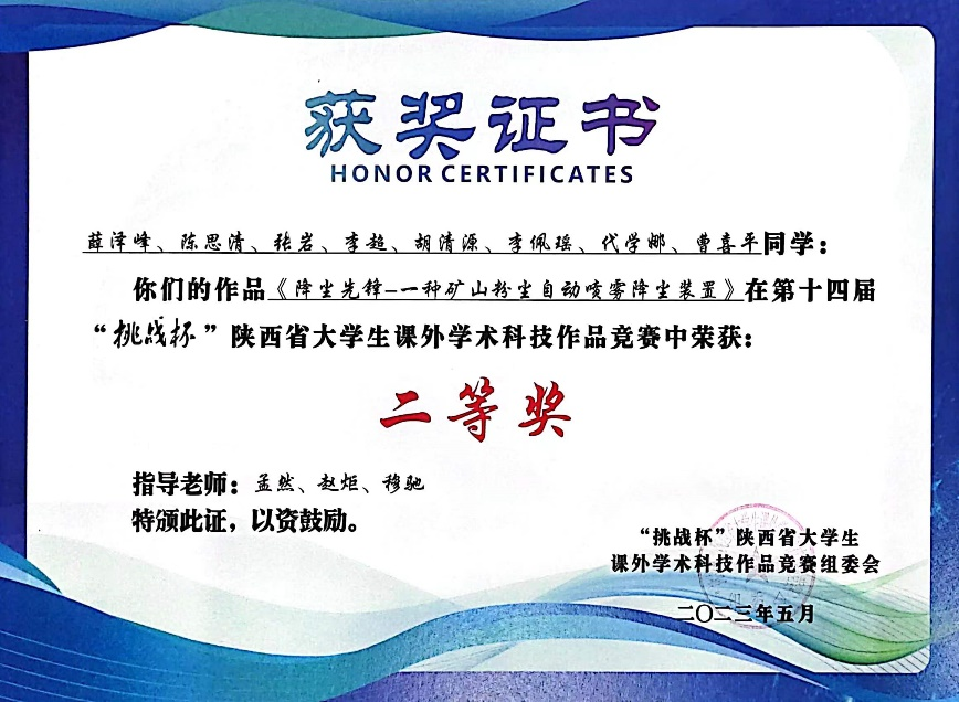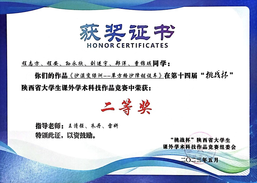 近日,由团省委、省委教育工委、省科技厅、省科协、省社会科学院、省学联、西咸新区管委会共同主办的第十四届“挑战杯”陕汽集团陕西省大学生课外学术科技作品竞赛圆满落幕。共有80所高校的878件作品报名参赛,我校9件作品入围省赛,经过激烈角逐,最终获得二等奖4项、三等奖4项的好成绩,为历年获奖数量之最。