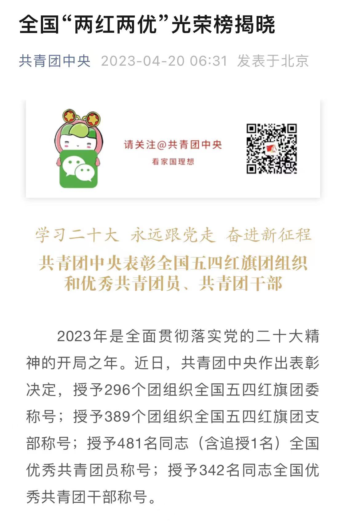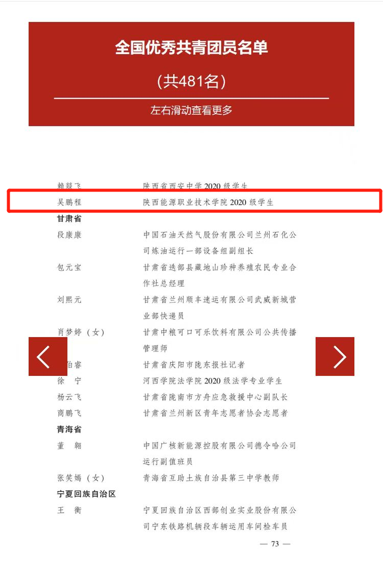 近日,共青团中央发文,对2022年度全国五四红旗团组织、优秀共青团员和共青团干部作出表彰决定,我校煤炭与化工产业学院机电一体化2013班、校学生会主席吴鹏程获“全国优秀共青团员”,也是全省高校唯一一名学生荣获2022年度优秀共青团员。同时这是我校首次获得共青团中央全国优秀共青团员称号。
