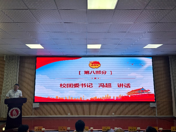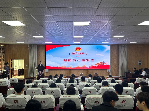校团委书记冯超老师代表校团委欢迎各位新团员的加入,并呼吁大家做勤奋学习、奋发作为,心怀梦想、志向远大,积极向上、尽责担当,内外兼修、品德高尚的青年。校党委副书记任向明老师向全体新团员表示由衷的祝贺,并寄语新团员们,希望同学们不仅在形式上入团,更要在思想上入团,今后要更加严格要求自己,严格遵守团章,履行团员义务,时时处处起模范带头作用。