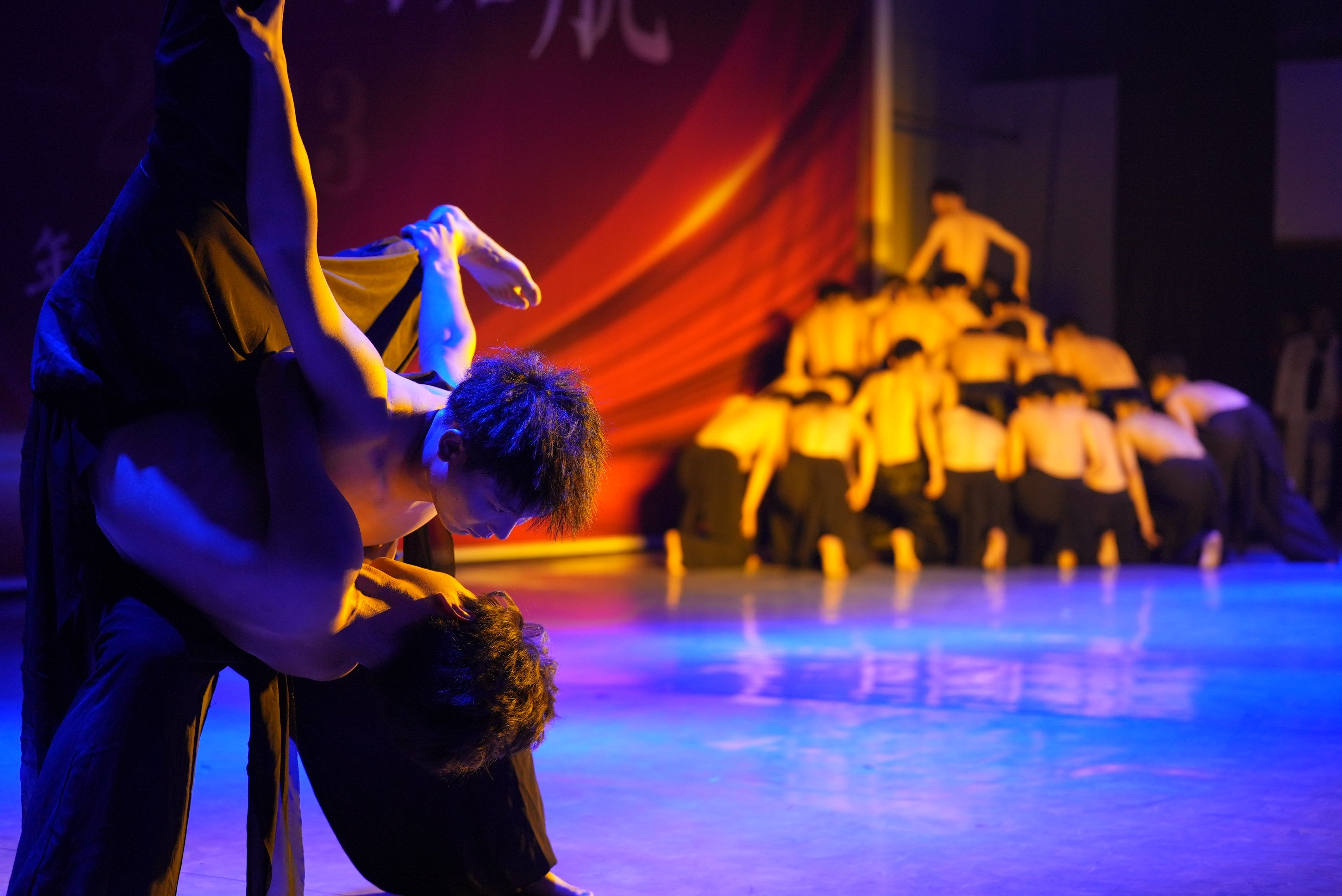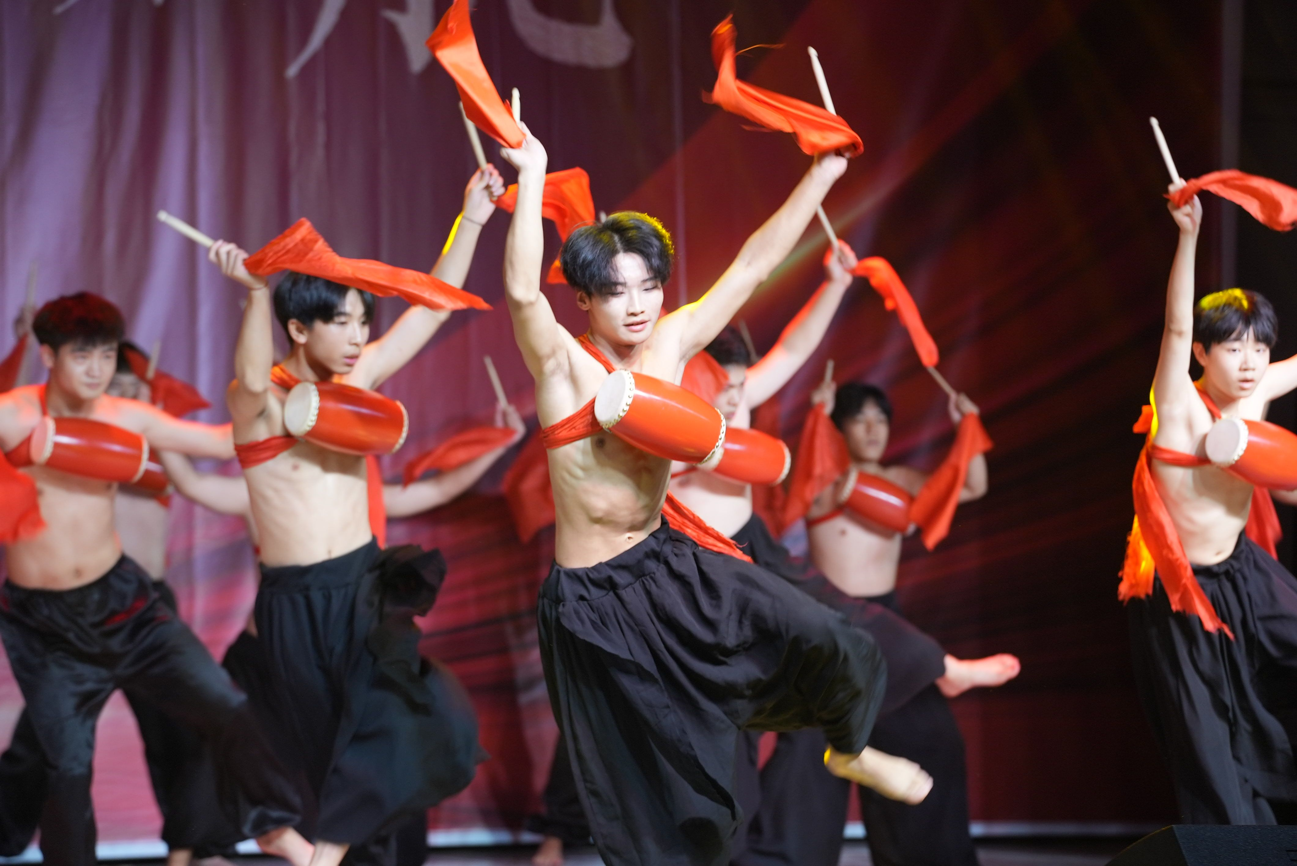 第一篇章 “源”:栉风沐雨,不忘来时路。舞蹈《英雄》表达我们在这和平祥瑞的幸福时刻,欢歌笑语、共享盛世之时,不忘那些为了民族解放事业做出牺牲和贡献的无数英雄先辈。没有他们哪有新中国,没有他们哪有我们的幸福生活。男女声二重唱《啊!中国的土地》、舞蹈《灯火里的中国》,歌颂我们的伟大祖国的怀抱中幸福生活的美好。大学生艺术团24名男生表演的舞蹈《脊梁》,寓意我校长期以来,依托行业办学,在能源化工、健康医护等领域深耕不辍,形成“一黑一白”的办学特色。“白衣天使、黑色脊梁”,我们是能源大业的坚实栋梁。多年来,一代又代能院人薪火相传,不断焕发生机,成为行业中坚力量。离退休教职工编排的舞蹈《黄河水从我家门前过》,演绎了陕能院教职工从三尺讲台到舞台的华丽变身,传达了他们退休不褪色、继续发光发热,如黄河之水奔腾不息的奋斗精神。