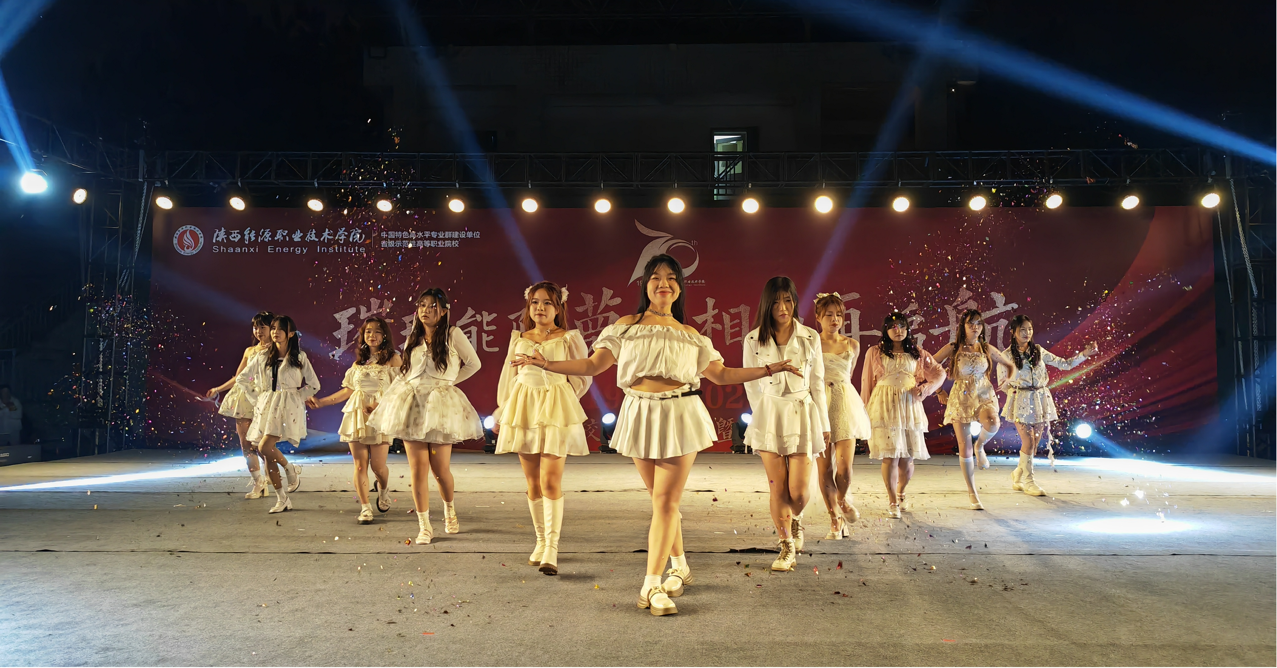 第二篇章 “缘”:相聚能院,薪火永相传。在校生创作的情景剧朗诵《凤凰浴火,涅磐重生》,讲述了一届届陕能院学子缘起陕能院,从五湖四海聚到一起,求学求职的故事,表达了陕能院师生筚路蓝缕、努力奋斗的艰辛历程和拼搏奉献、爱岗敬业的良好品质。舞蹈《