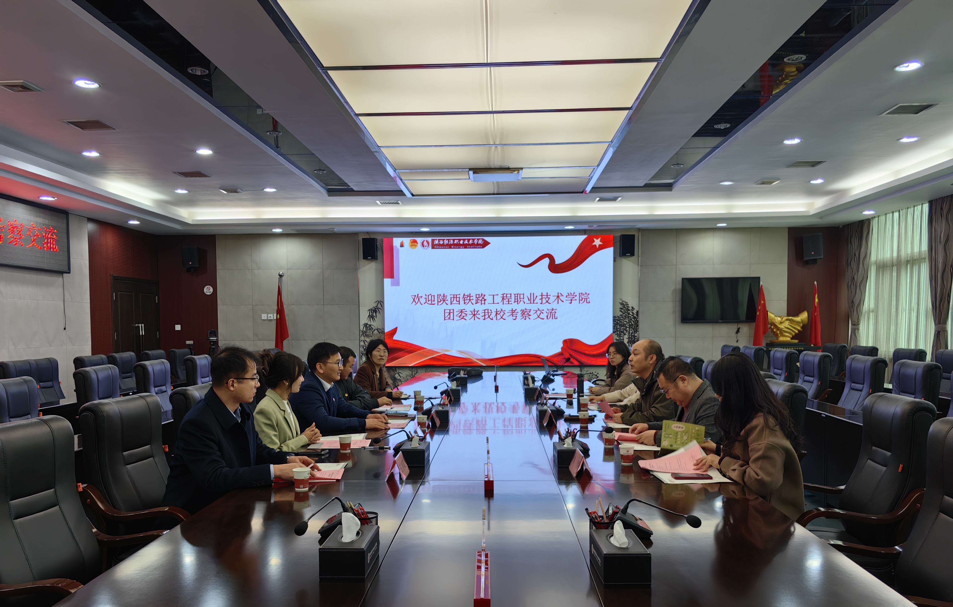 3月13日上午,陕西铁路工程职业技术学院团委书记姚天魁一行5人来我校调研共青团及美育工作。调研交流会在办公楼第三会议室举行,校团委全体人员、人文与教育学院美育教研室主任韩剑参加座谈,座谈会由校团委书记王皓天主持。
