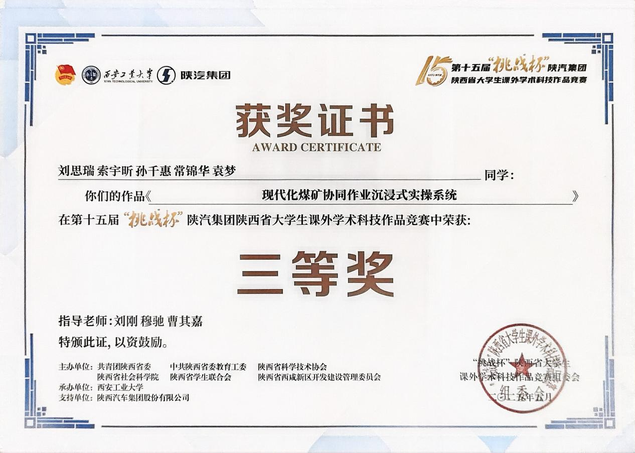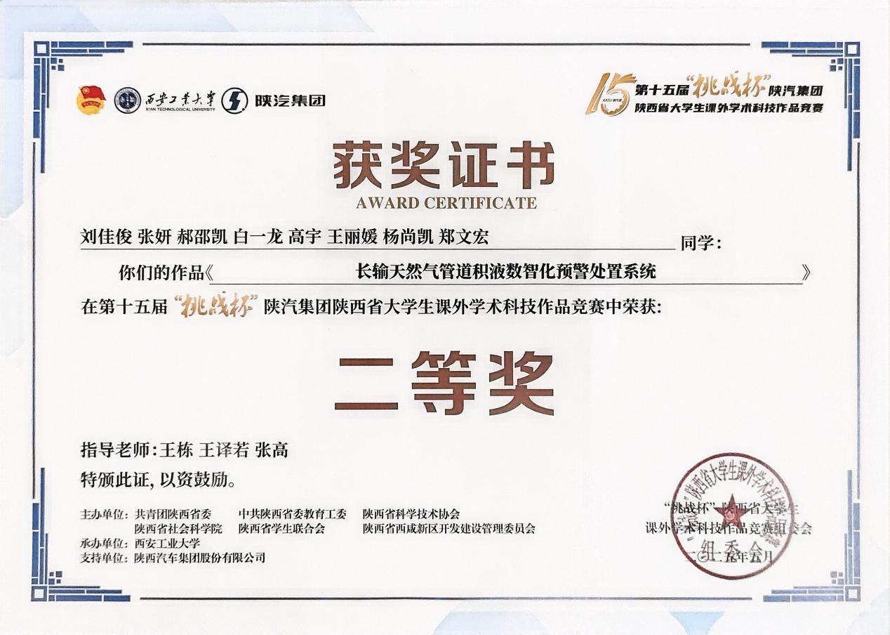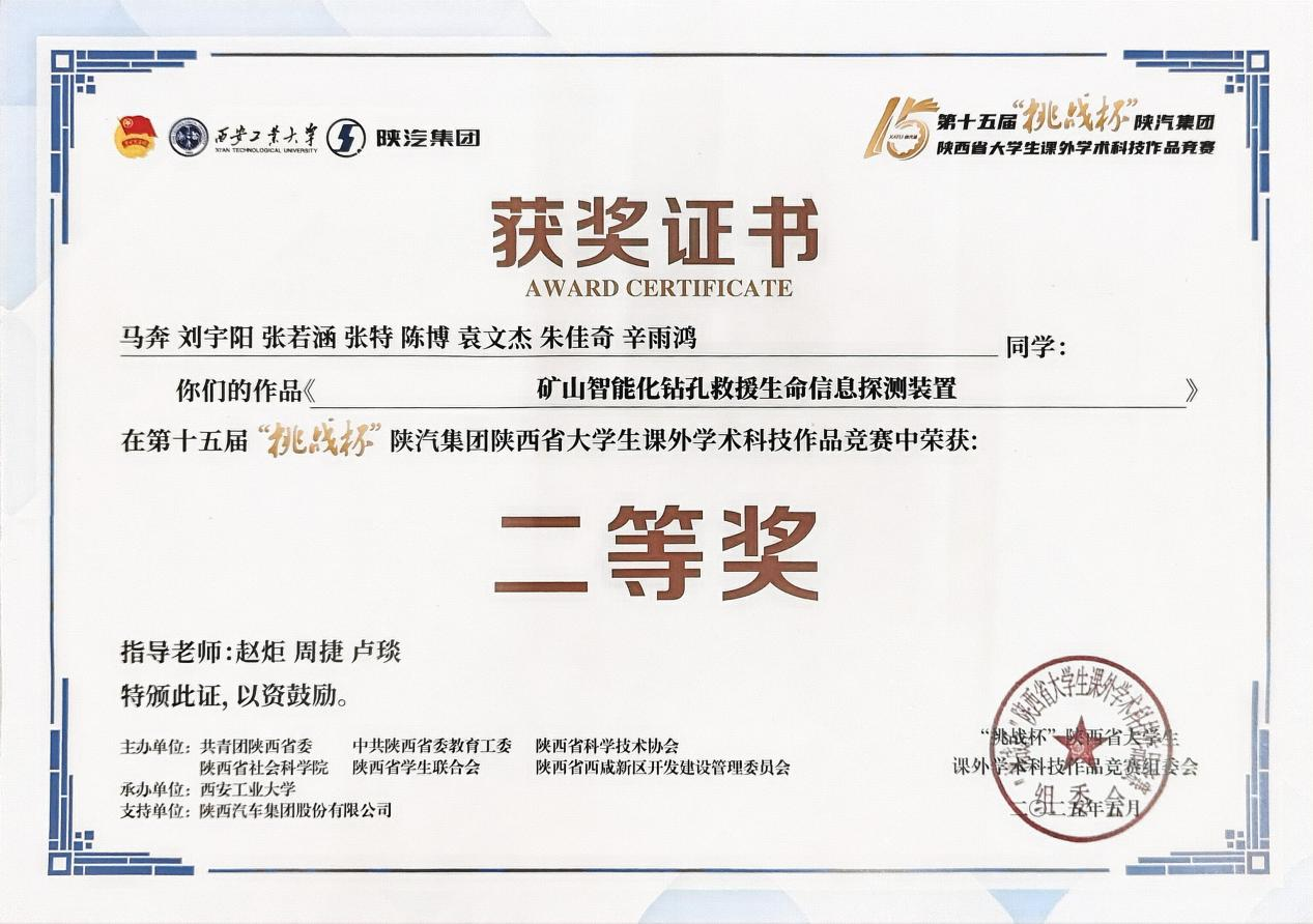 近日,由共青团陕西省委、省委教育工委、省科协、省社会科学院、省学联、西咸新区管委会联合主办的第十五届“挑战杯”陕汽集团陕西省大学生课外学术科技作品竞赛圆满结束。共有全省86所高校推荐991件作品参加省赛,我校9件作品入围省赛,经过激烈角逐,最终获得一等奖1项、二等奖5项、三等奖2项的好成绩。