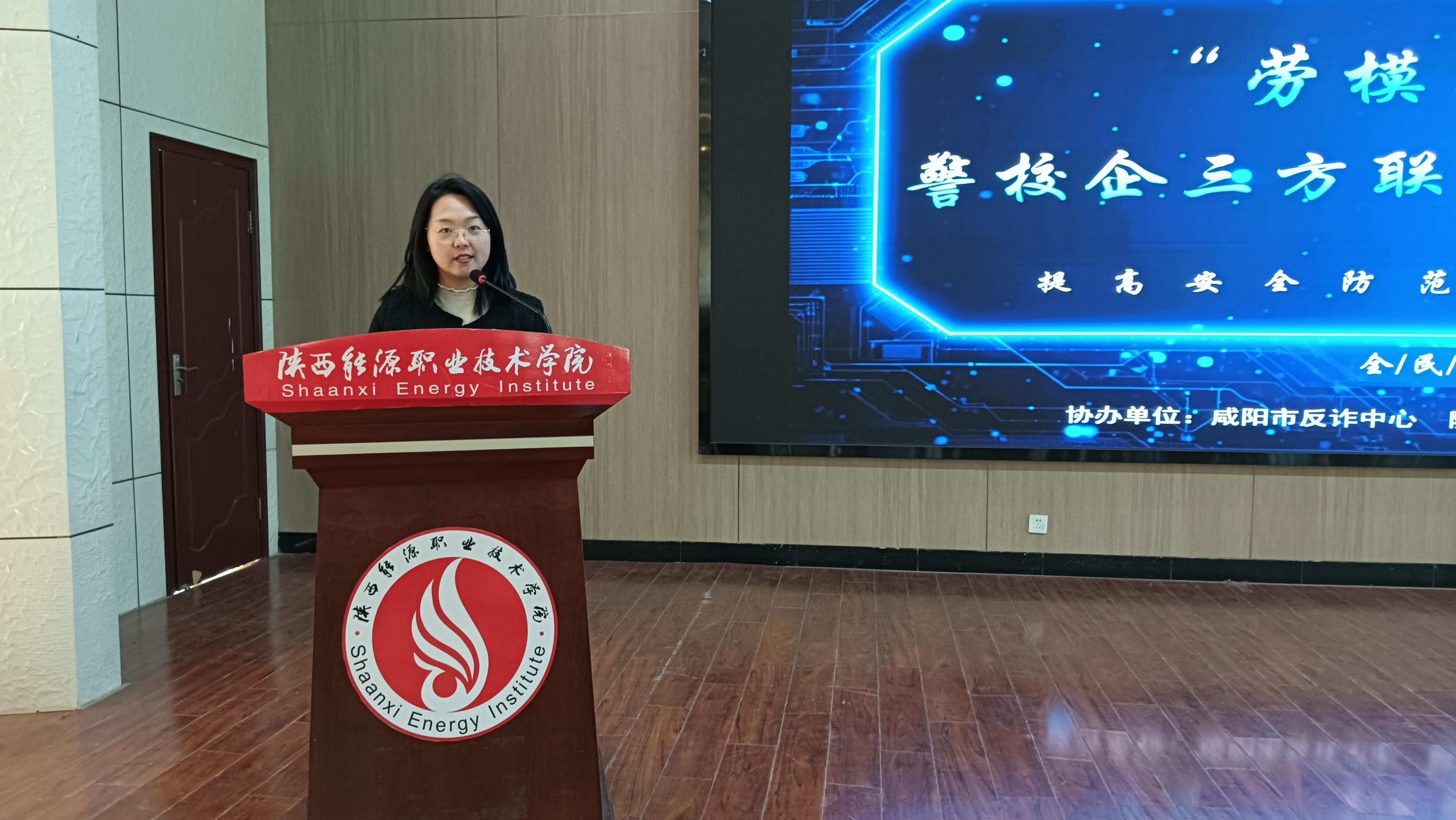 为切实提升我校学子防电诈意识与自我保护能力,充分发挥劳模工匠引领作用及警校企协同育人优势,2025年11月21日下午,由咸阳市反诈中心、联通公司与校团委联合举办“劳模工匠进校园—警校企三方联动 防电诈你我同行”宣传讲座在实训楼六楼报告厅进行,特邀咸阳市反诈中心韩佳颐警官担任主讲嘉宾,团委副书记郭少婷主持会议,三百余名师生参与,同时开展线上直播,浏览量超万余次。