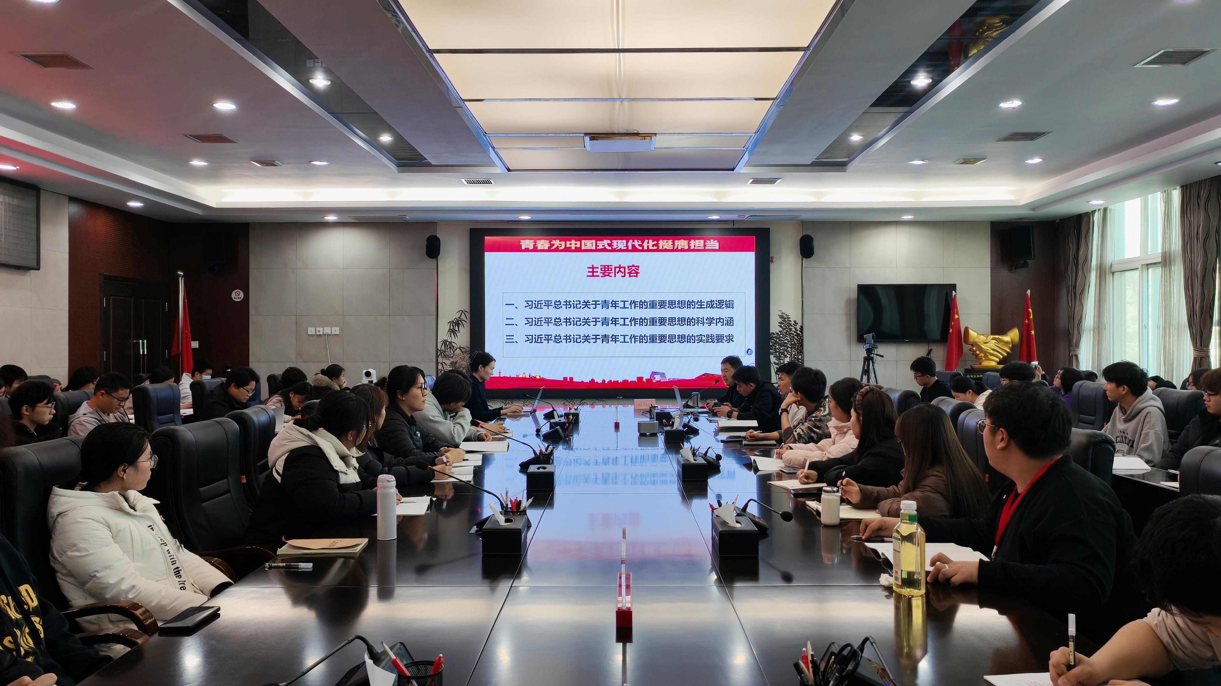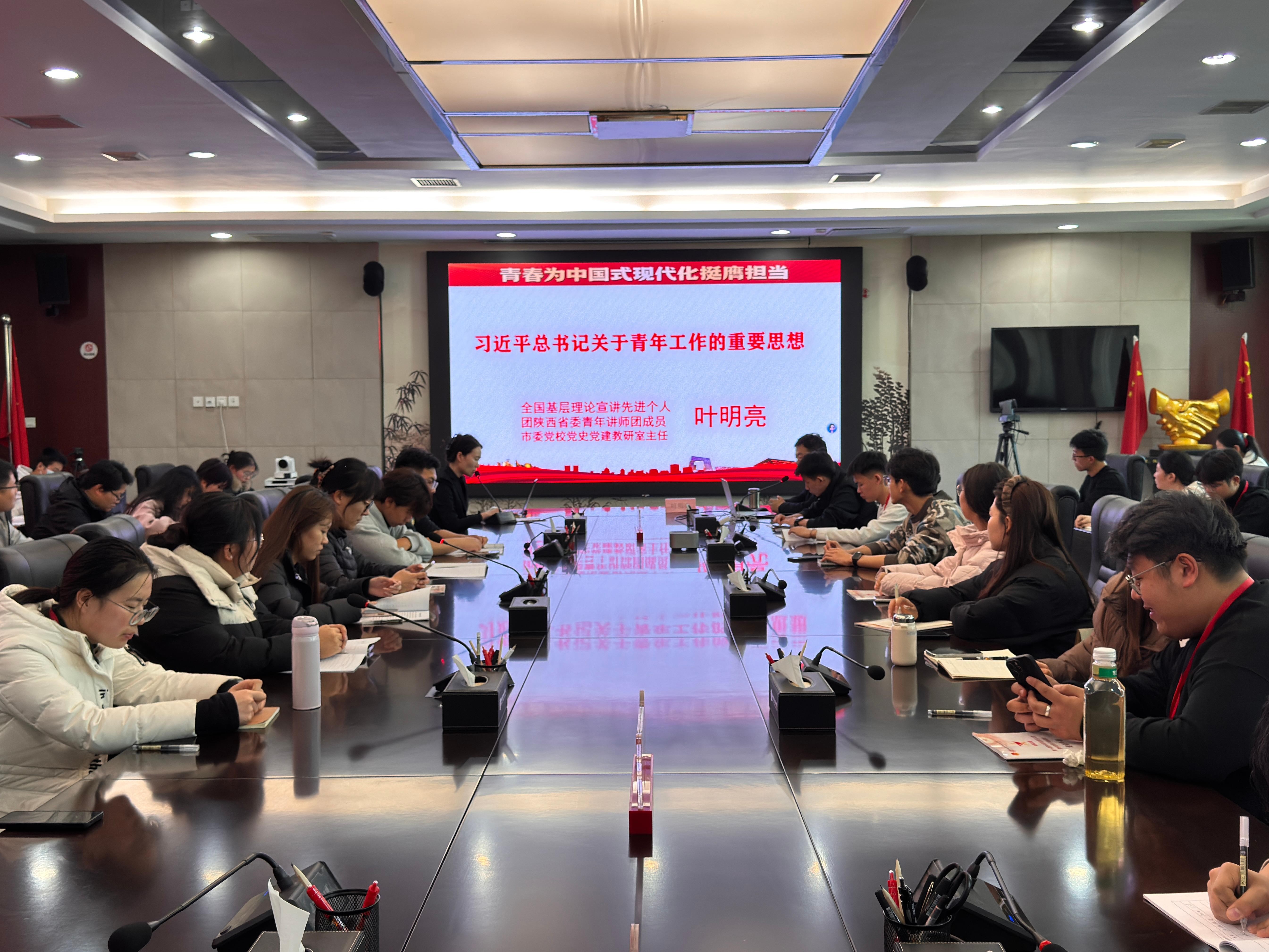 为深入学习贯彻习近平总书记关于青年工作的重要思想,引导青年学子深刻把握新时代青年工作的方向和使命,11月28日下午,陕西能源职业技术学院第10期青年马克思主义者培养工程培训班于咸阳校区第三会议室开展理论学习第二讲——《深入学习贯彻习近平总书记关于青年工作的重要思想》。本次理论学习讲座特邀中共咸阳市委党校党史教研室主任、副教授叶明亮担任主讲人,校团委负责人及青马学员100余人参加学习。