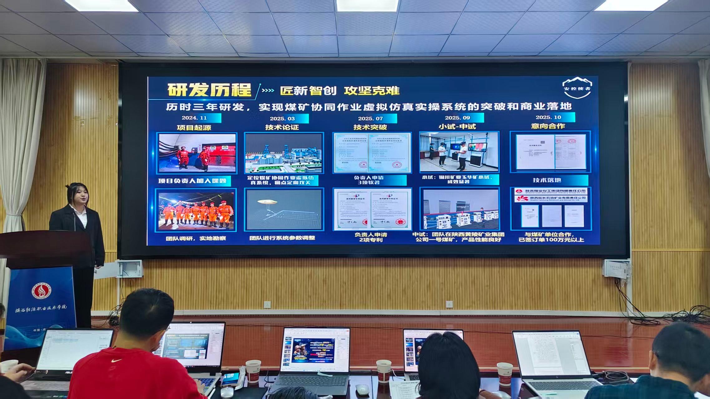 为增强我校学生的创新实践能力,选拔优秀项目,提升参赛项目质量,2025年12月4日,我校2026年“挑战杯”复赛评审会在文林大讲堂组织召开,此次复赛邀请“挑战杯”竞赛校外专家五名担任评审,各项目组团队成员及指导教师一百余名参加此次评审会。评审会由团委副书记郭少婷主持。