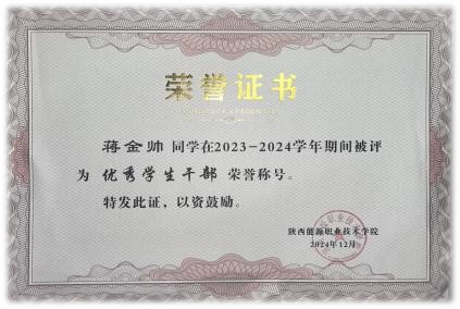 青春的注脚,从来都写在实干的路上。在陕西能源职业技术学院,有位青年正用脚步丈量成长:从社区敬老的暖心事,到校园履职的担当样,从绿茵场的汗水,到多元舞台的绽放,每一步都踩着热爱与坚定。他就是新型能源学院电气2304班蒋金帅,一个把青春过成“进行时”,在逐梦路上步履不停的赶路人。