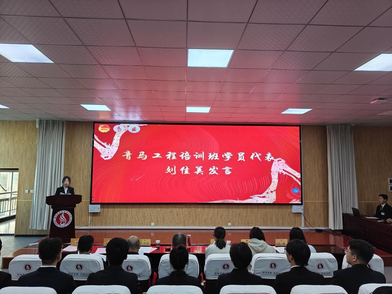 校党委副书记任向明在讲话中寄语青马班全体学员要珍惜本次学习机会,端正学习态度,作为学生干部中的积极分子要肩负好沟通桥梁、示范引领以及组织凝聚的多重作用,并从参训学员、校团委以及二级学院等多个角度,提出针对性要求:一是参训学员遵守培训纪律认真学习;二是校团委加强统筹协调增进实效;三是各二级学院配套推进做好二级培训工作,分层分类同步做好全校团学干部培养工作。