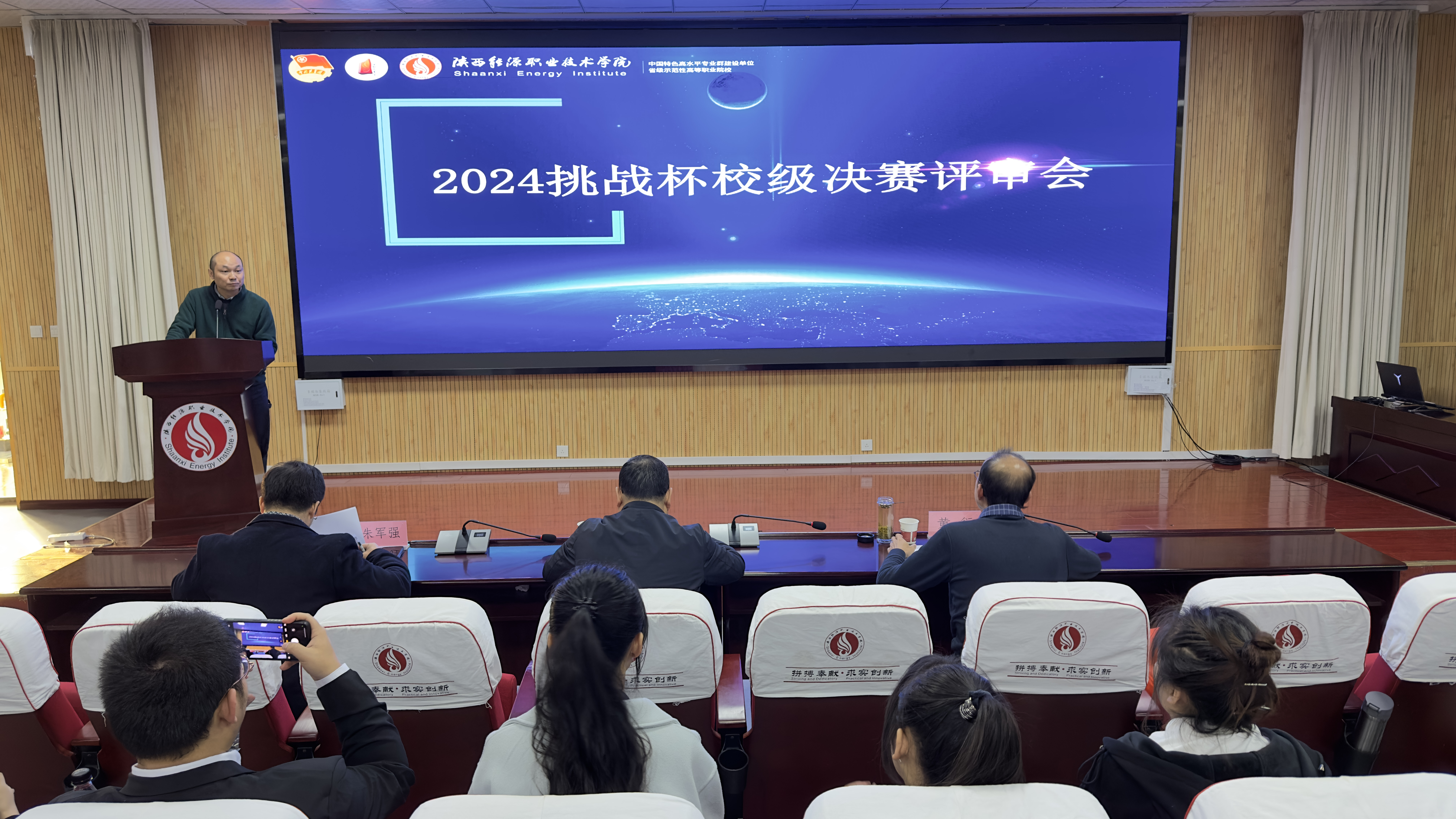 2023年11月22日下午,我校2024年“挑战杯”校级决赛评审会在办公楼四楼文林大讲堂组织召开,此次评审会邀请互联网+、挑战杯国省赛专家张伟、朱军强、黄衍担任评审,校团委相关人员及各项目组团队成员、指导教师共70余人参加此次评审会。评审会由团委书记王皓天主持。