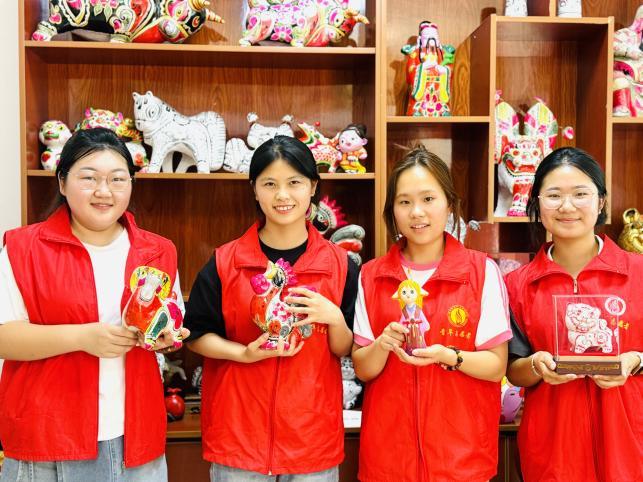 实践团首先走进有“中国泥塑第一村”美誉的六营村,开始实地调研该村“小泥塑,大产业”的发展之路。一进村,一座高大威猛的彩绘泥塑造型“坐虎”映入眼帘。凤翔彩绘泥塑始于周秦、兴于唐宋、盛于明清,距今已有2400多年的历史,2006年被列为首批国家级非物质文化遗产项目。在该村的西府民俗艺博园,大小泥塑造型各异,不同题材的泥塑作品琳琅满目。在院落里有一人高的大型泥塑,在展室里也有掌上把玩的微型作品。摆满展台的神态各异的生肖拜年鼠、机灵鼠、萌娃鼠……造型夸张、形态饱满、形神兼备、惟妙惟肖。面对独具特色的历史文化资源,六营村顺时应势、创新实践,大力推行“非遗+旅游”模式,抓产业促共富,优治理促振兴,兴文化树新风,真正让凤翔泥塑在乡村振兴中大放异彩。
