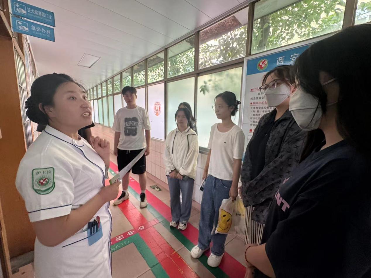 为深化前期流浪动物关怀实践成果,拓展公共卫生安全认知,7月23日,我校“青春‘喵’准基层”实践团在指导老师郝家琪的带领下,专程前往临潼区人民医院犬伤处置门诊(狂犬病暴露预防处置门诊)进行参观学习。此次活动旨在深入了解专业规范的动物致伤处置流程,提升团队队员及潜在服务对象的预防意识和应急知识,进一步筑牢人宠共处的安全基础。