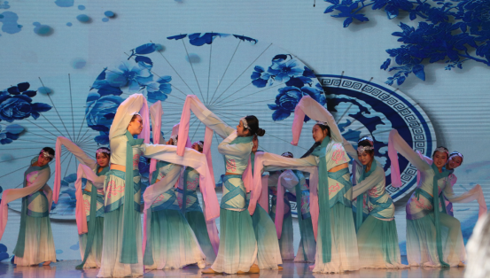 教职工舞蹈团带来《花样年华》,旗袍如诗,有万千的雅致。踏着一节节高山流水的音乐,一段段风花雪月的浪漫,曼妙多姿,典雅高贵,款款深情。金稻穗艺术团的古典舞《风华录》,展示出大唐开国的豪迈及后世难以企及的盛世风流。机信学院表演的《地心四百米》的演员们激情演绎、入情入景,演绎出了矿区工作者的艰辛与不易,赢得阵阵掌声。