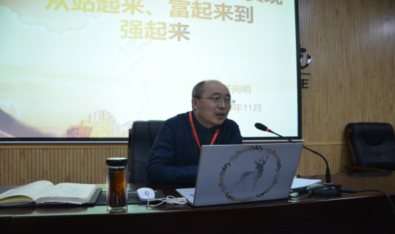 任向明所做的主题报告主要从“什么是站起来、富起来、强起来”、“中华民族为什么能够实现从站起来、富起来到强起来的伟大飞跃”这两个部分分别展开。回顾党的发展历程,帮助大家了解党、认识党、了解习近平新时代中国特色社会主义思想,从而坚定理想信念,努力提高全面素质,成为马克思主义坚定信仰者和实践者,成长为中国特色社会主义事业合格建设者和可靠接班人。