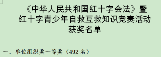 近日,中国红十字会总会发文,对2019年全国红十字知识竞赛活动获奖单位及个人进行表彰,根据《关于<中华人民共和国红十字会法>暨红十字青少年自救互救知识竞赛活动获奖单位及个人的通知》(中红办字〔2019〕106号),我校荣获“单位组织一等奖”,是陕西省获此殊荣的唯一一个高职院校,也是我校连续3年参加此项竞赛活动,获得的最佳成绩。