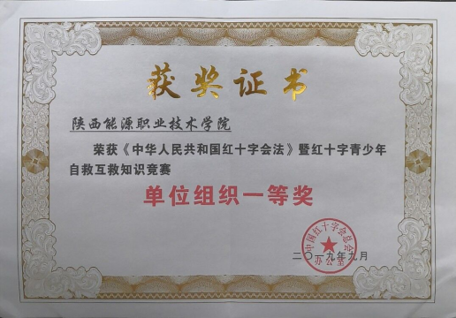2019年3月,中国红十字会总会在全国范围内举办了《中华人民共和国红十字会法》暨红十字青少年自救互救知识竞赛,自发布竞赛通知以来,校团委积极参与,并号召团属各级红十字组织启动参赛工作,并通过开设红十字专题团课学习、专题培训、线上线下互动交流等方式,扩大参赛范围和参赛率,也确保学生对竞赛知识的掌握,有效提升学生答题准确率,让参与同学有效掌握红十字会法和自救互救知识。同时积极与陕西省红十字会保持有效沟通,及时落实反馈竞赛进展,取得了良好效果,获得由中国红十字会总会颁发的全国《中华人民共和国红十字会法》暨红十字青少年自救互救知识竞赛“单位组织一等奖”。