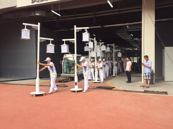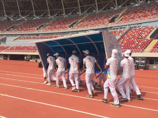 【现场志愿服务组搬运场内设施】